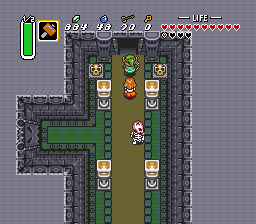 如果你拥有拜尔娜之杖或魔法披风,现在正是使用它们的时候。使用拜尔娜之杖时,林克可以直接穿过Blind,由法杖自动造成伤害。若拥有魔法披风,林克可以在不受伤的情况下用剑攻击。