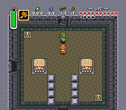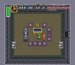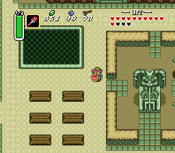 下一个迷宫位于黑暗世界西部的流放者村庄,对应光明世界中的卡卡利科村的位置。即使拥有火焰杖,也没有新的支线任务可做,因此我们可以直接前往下一个迷宫。
