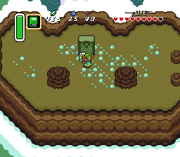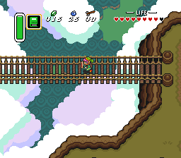 回到外面后,跳下悬崖并向上移动一屏。走到该区域的西北角,然后向西进入迷失森林(Lost Woods)。