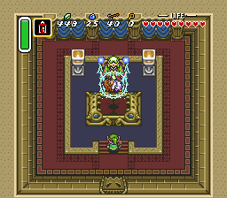 刚获得大师之剑后,林克便通过心灵感应收到了萨哈斯拉拉(Sahasrahla)的消息。当林克离开该区域后,他又一次收到心灵感应,这次是塞尔达公主。她大喊士兵正朝圣所赶来,随后发出一声尖叫。