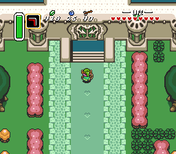 离开圣所,向西移动一屏。立即向南移动一屏,进入一片森林区域。击败或避开士兵,然后向东走,抵达海拉鲁城堡外部。走到城堡正面,进入庭院。继续前进,再次进入海拉鲁城堡。