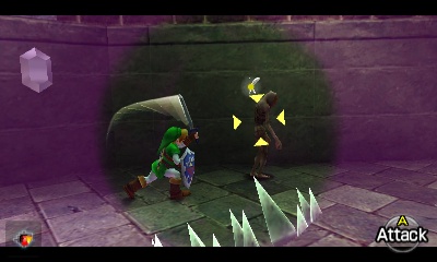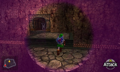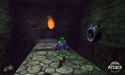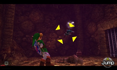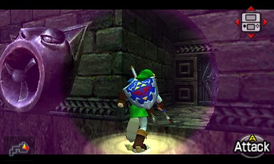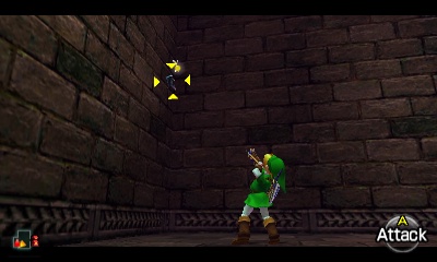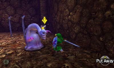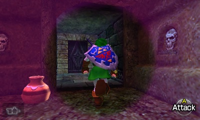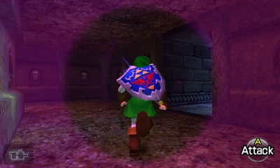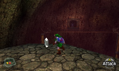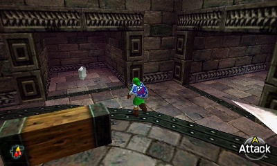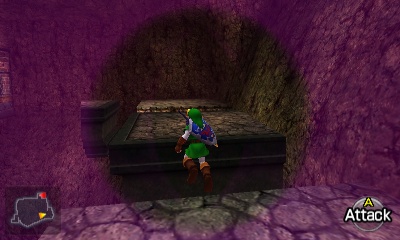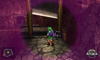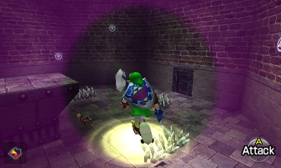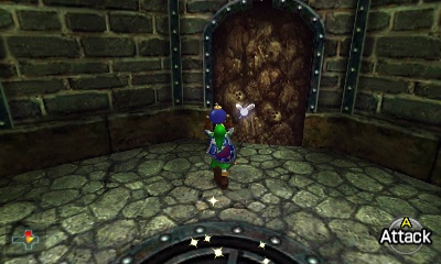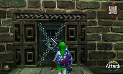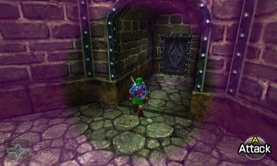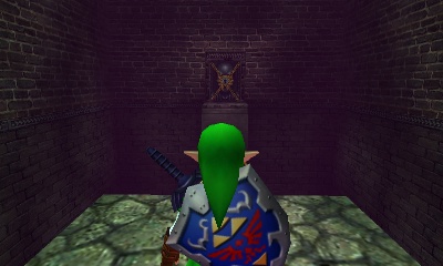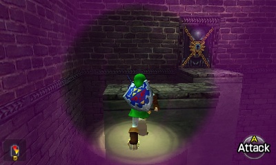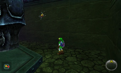 入口房间 – 进入后,你会立刻面对一个深坑。用长距离钩索(Longshot)越过深坑,朝假墙走去。此时会有一个声音告诉你,需要“真实之眼”才能继续前进。如果你还没有从卡卡利科村的井底获得“真实之眼”,请参考上一章节。