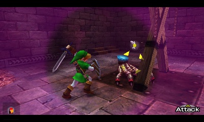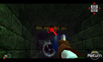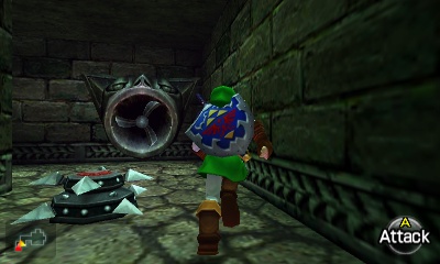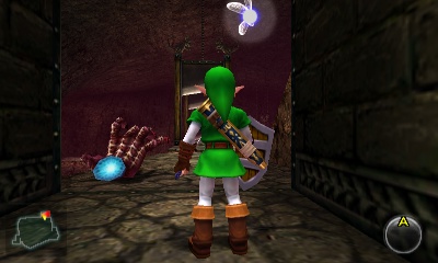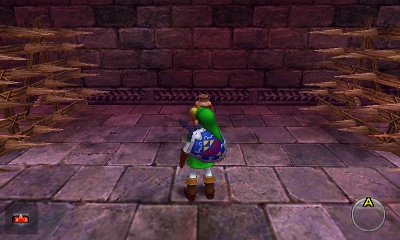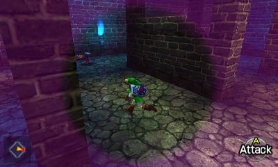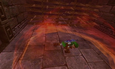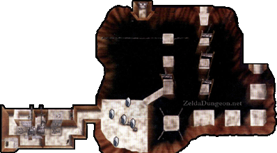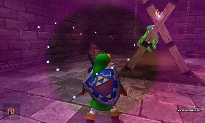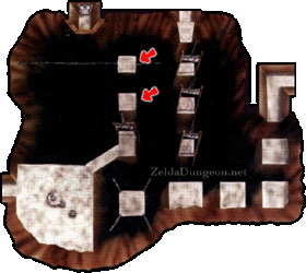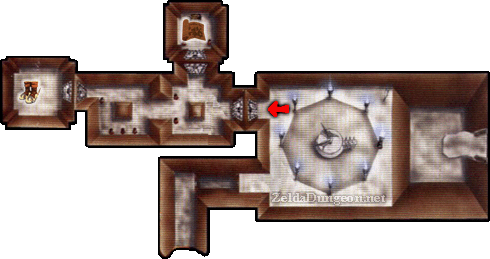 Beamos走廊 – 这个小房间分成四个方向,包括你刚进来的那个。你可以杀死中间的Beamos,但当你重新进入房间时它会再次出现。不过,如果你杀死了它,面对房间中央演奏“风暴之歌”,就会出现一个妖精。无论如何,左右两侧的墙壁都是假的。走右边的通道。