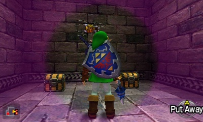 Gibdo房间 – 进入这个黑暗房间后,立即演奏“太阳之歌”使Gibdo僵直并迅速消灭它们。会出现一个小宝箱,里面装着炸弹。这是个伏笔!